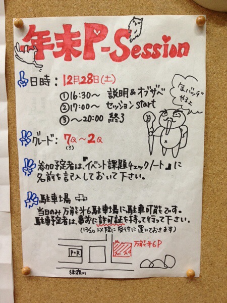12月28日土曜日は今年最終日になりますので、夕方からちょっとしたセッション会検討しています。